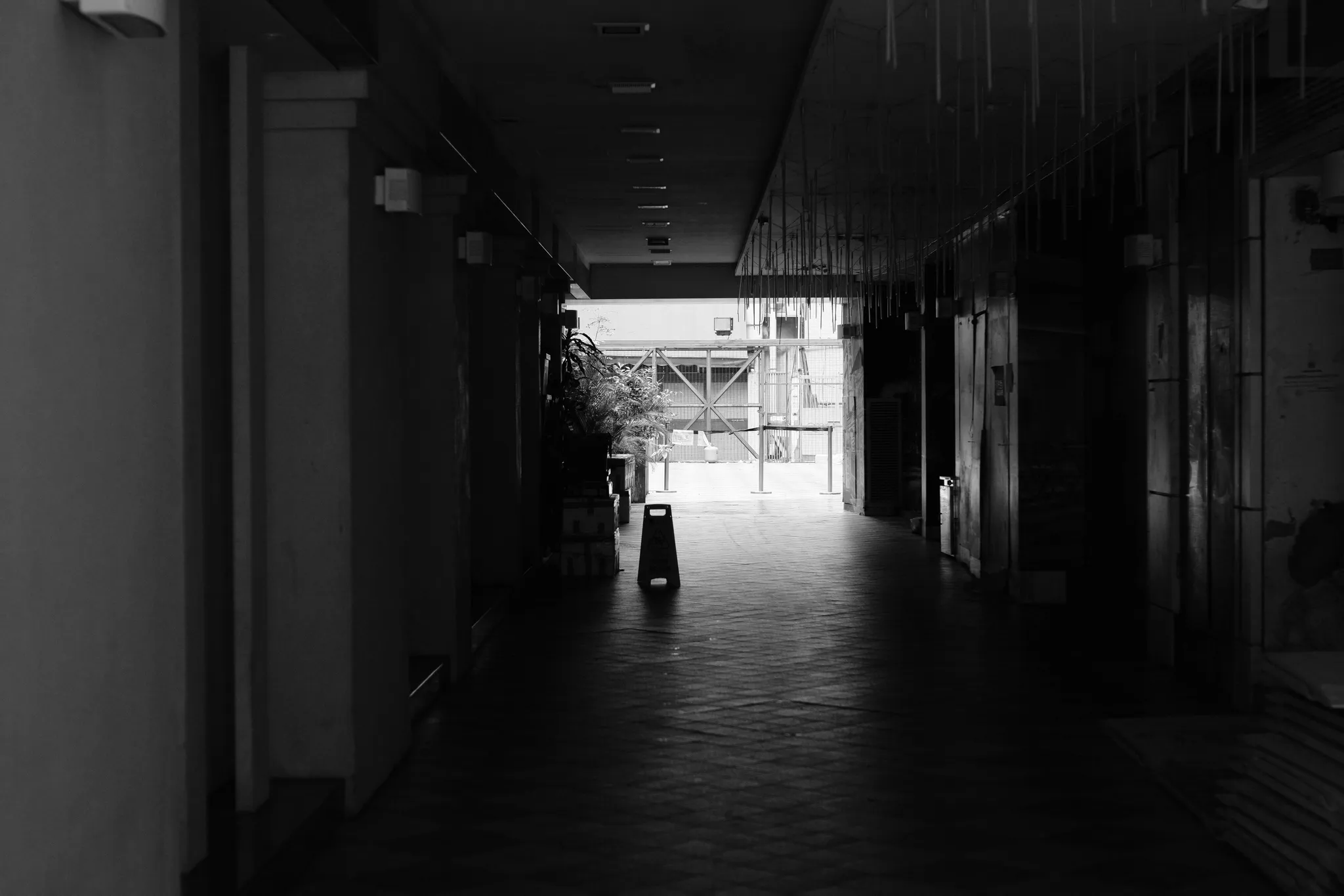 Surreal scene of total darkness outside despite the bright afternoon sunlight.
